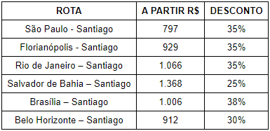 A companhia aérea oferecerá passagens para a capital chilena com preços a partir de R$ 797 ida e volta, incluindo impostos. Condição especial chega a 35% de desconto