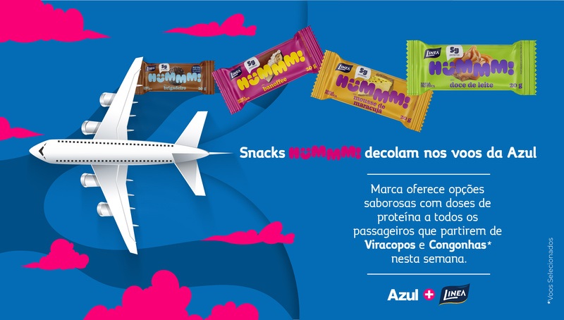 “Nosso objetivo é transformar a experiência de viagem e esse momento dos passageiros, proporcionando uma pausa saborosa durante o voo. Imagine desfrutar do sabor cremoso de um brigadeiro ou a refrescância vibrante do maracujá, tudo isso enquanto consome a Hummm!. Com nossos snacks, os passageiros podem se deliciar com uma sobremesa irresistível que também oferece uma dose de proteína para ajudar na saciedade, e o melhor, sem adição de açúcar”, ressalta Juliana Napolitano, Gerente de Marketing da Linea Alimentos.