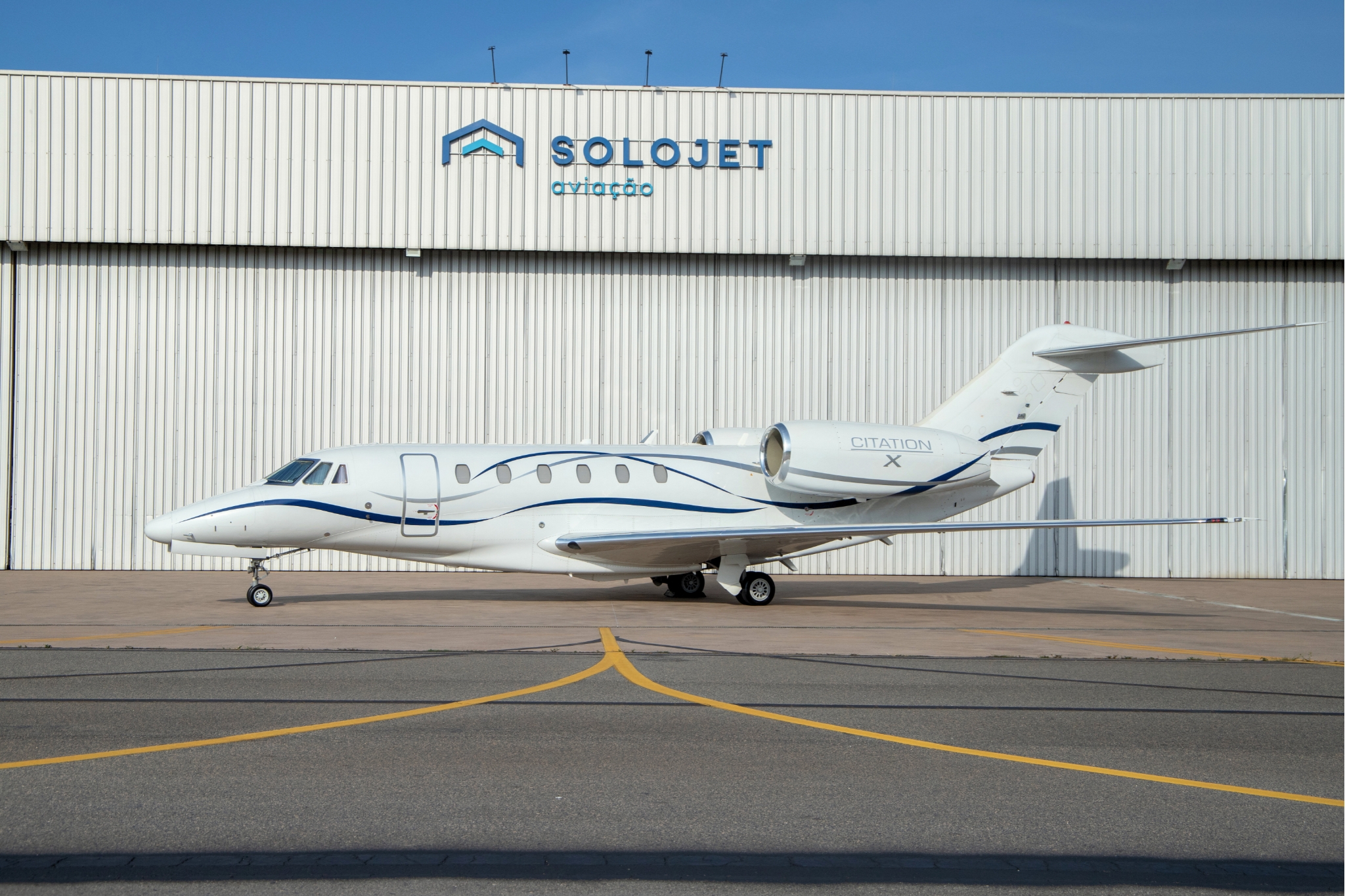 A Solojet Aviação vai trazer o primeiro Citation X para compartilhamento no Brasil. A aeronave já chegou ao aeroporto de Jundiaí para fazer parte do programa Solojet Shares, criado pela Solojet para o compartilhamento de aeronaves. A empresa atualmente conta com quatro aeronaves Hawker 400XP no programa e, agora, a ideia é seguir com os dois modelos. O Citation X vai passar por completo programa de retrofit e receber a pintura nas cores do Solojet Shares.