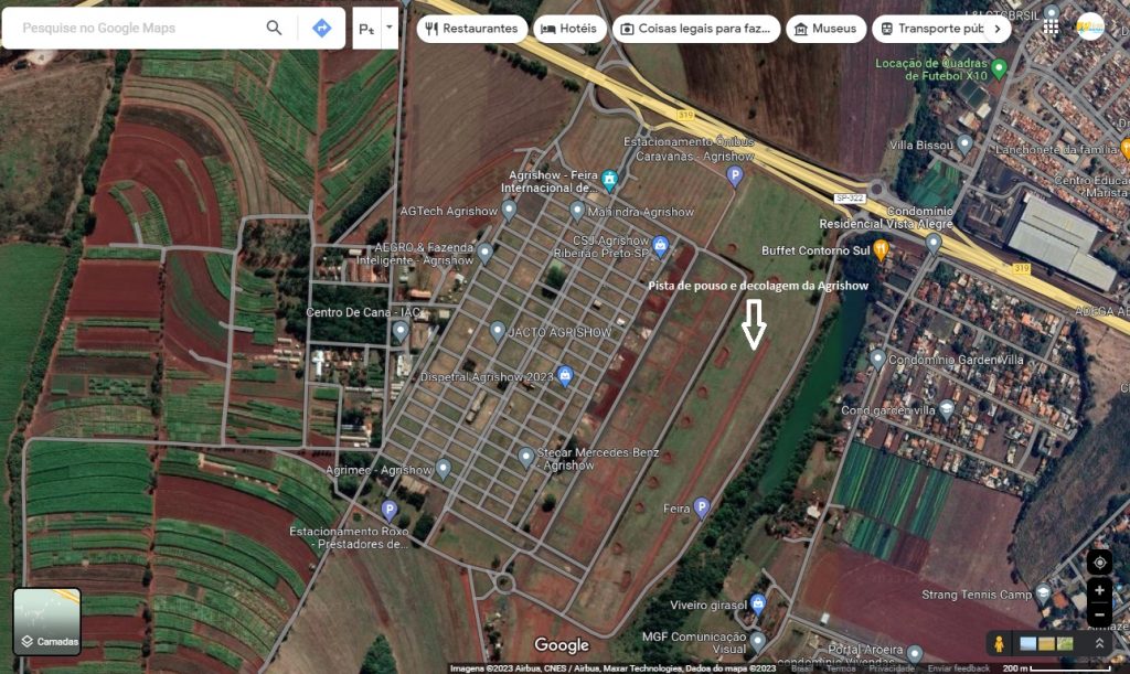 Nesta imagem de satélite podemos localizar onde está situada a pista da Agrishow.