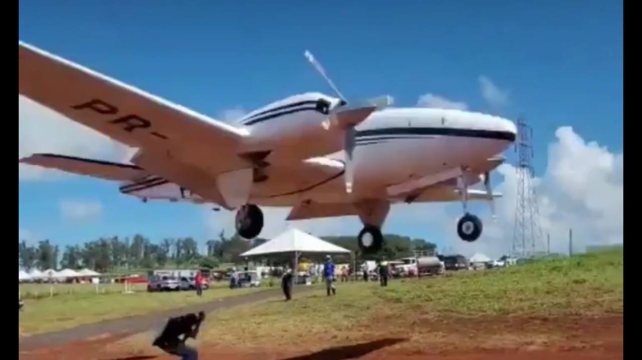 Em um vídeo que circula nas redes sociais é possível ver um homem cruzando a pista de pouso de aeronaves da Agrishow durante a aproximação e pouso da aeronave Beechcraft B58.
