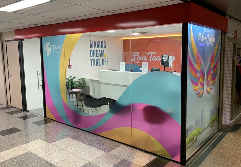 Localizada no Terminal 2, Asa C, a loja de atendimento da TAAG em Guarulhos, agora é instagramável e convida os clientes a tirar fotos e fazer publicações com o slogan #LoveTaag. A loja abre às segundas, quartas, sextas, sábados e domingos, das 13h30 às 19h30, dias em que ocorrem os voos TAAG entre Brasil e Angola.