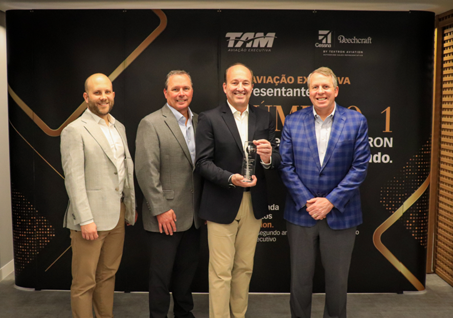 A TAM Aviação Executiva, número um em vendas de aeronaves executivas no país, acaba de conquistar mais um reconhecimento internacional. A companhia foi nomeada como a maior representante de vendas autorizada da Textron Aviation para aeronaves Cessna Citation e Beechcraft King Air no ano de 2023. Esse é o segundo ano consecutivo que a empresa alcança tal feito. O prêmio foi entregue pessoalmente pelos executivos da Textron Aviation em visita à sede da TAM AE, em São Paulo, no mês de março.