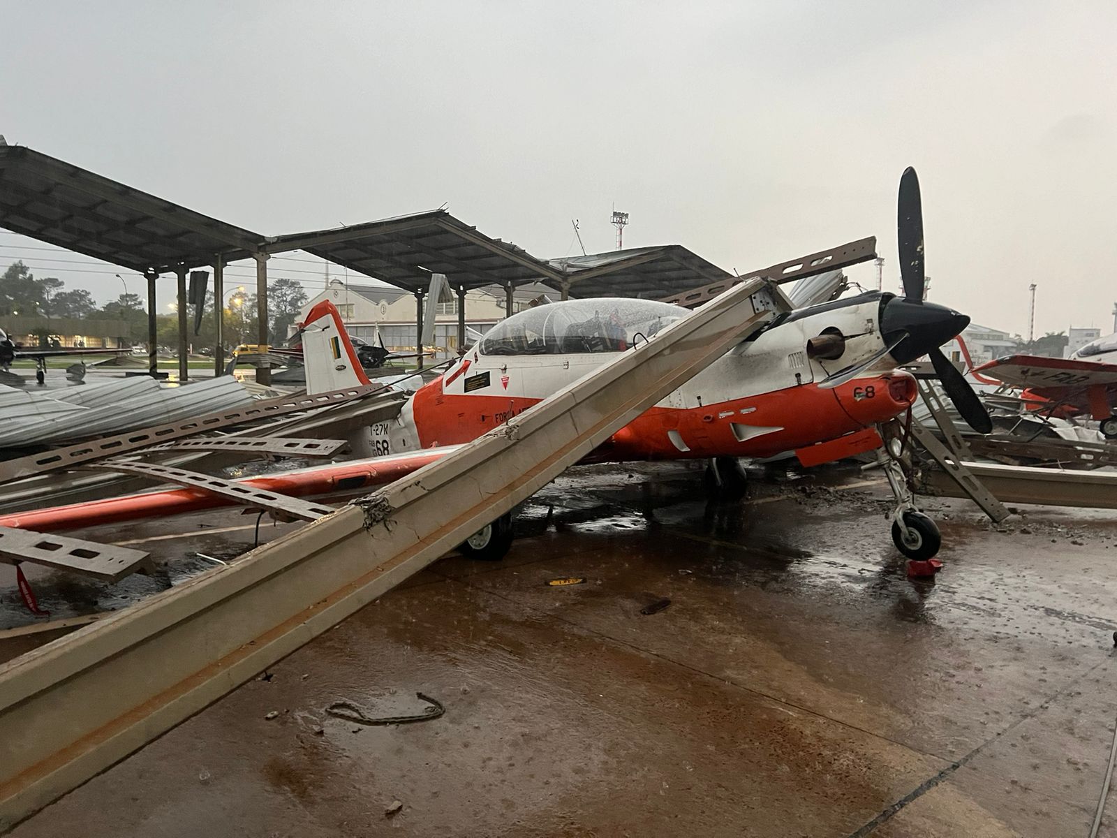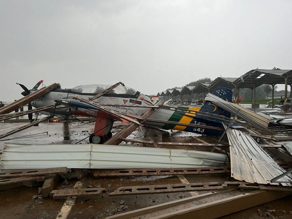 Na AFA, oito hangares foram completamente destruídos, resultando em perdas significativas para a Força Aérea Brasileira. Além disso, três aeronaves T27 Tucano, aeronaves de treinamento utilizadas pela instituição, sofreram danos consideráveis devido ao vendaval.