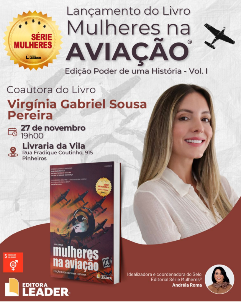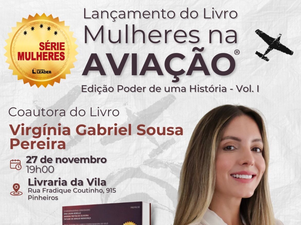 A trajetória de mulheres na aviação é o principal tema do livro “Mulheres na Aviação – Edição Poder de uma História, Volume I”, que será lançado no dia 27 de novembro, na Livraria da Vila, em São Paulo. A obra conta com um capítulo escrito pela Virgínia Pereira, Head Trader de Aeronaves da Timbro, a maior importadora de aeronaves executivas no Brasil.
