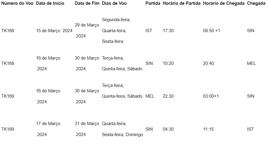 A companhia aérea, que programará 3 voos por semana para Melbourne, seu 346ª destino em 130 países a partir de 15 de março de 2024, assim, contribuirá para os volumes de turismo e comércio de ambos os países, transportando milhares de visitantes na rota Istambul-Melbourne a cada ano. Com os voos realizados via Singapura, a Turkish Airlines também terá a distinção de ser a única companhia aérea europeia a operar voos para o Aeroporto de Melbourne.