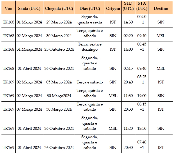 Para ver os horários dos voos, visite www.turkishairlines.com, entre em contato com o centro de atendimento no +90 212 444 0 849, ou visite qualquer escritório de vendas da Turkish Airlines.