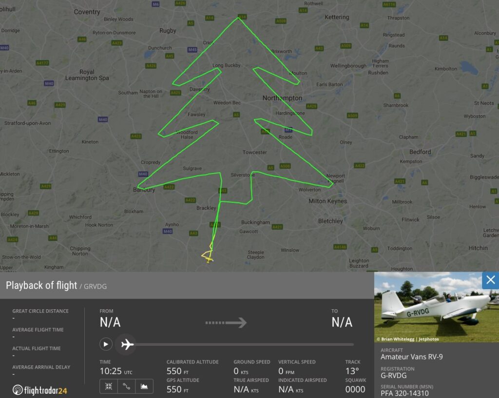 Os pilotos da Airbus não foram os primeiros a entrar no espírito natalino, já que no ano passado dois pilotos fizeram o melhor que puderam para desenhar árvores, embora em aeronaves muito menores. Em 11 de dezembro, o piloto do G-RVDG voou para os céus perto de Northampton para desenhar uma árvore.