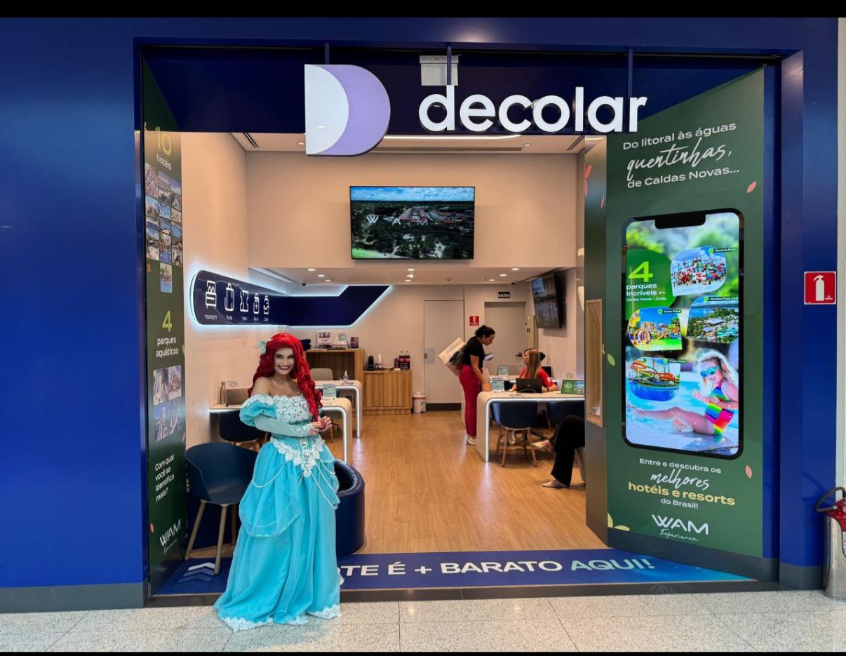 No ParkShopping São Caetano, a loja da Decolar recebeu adesivação completa da fachada para destacar os produtos da WAM Experience. O espaço conta ainda com um ponto instagramável — uma piscina de bolinhas aberta ao público — pensado para atrair visitantes, estimular registros fotográficos e incentivar a geração de conteúdo orgânico nas redes sociais. Um personagem caracterizado como sereia complementa a ação, interagindo com os clientes e reforçando o apelo lúdico.