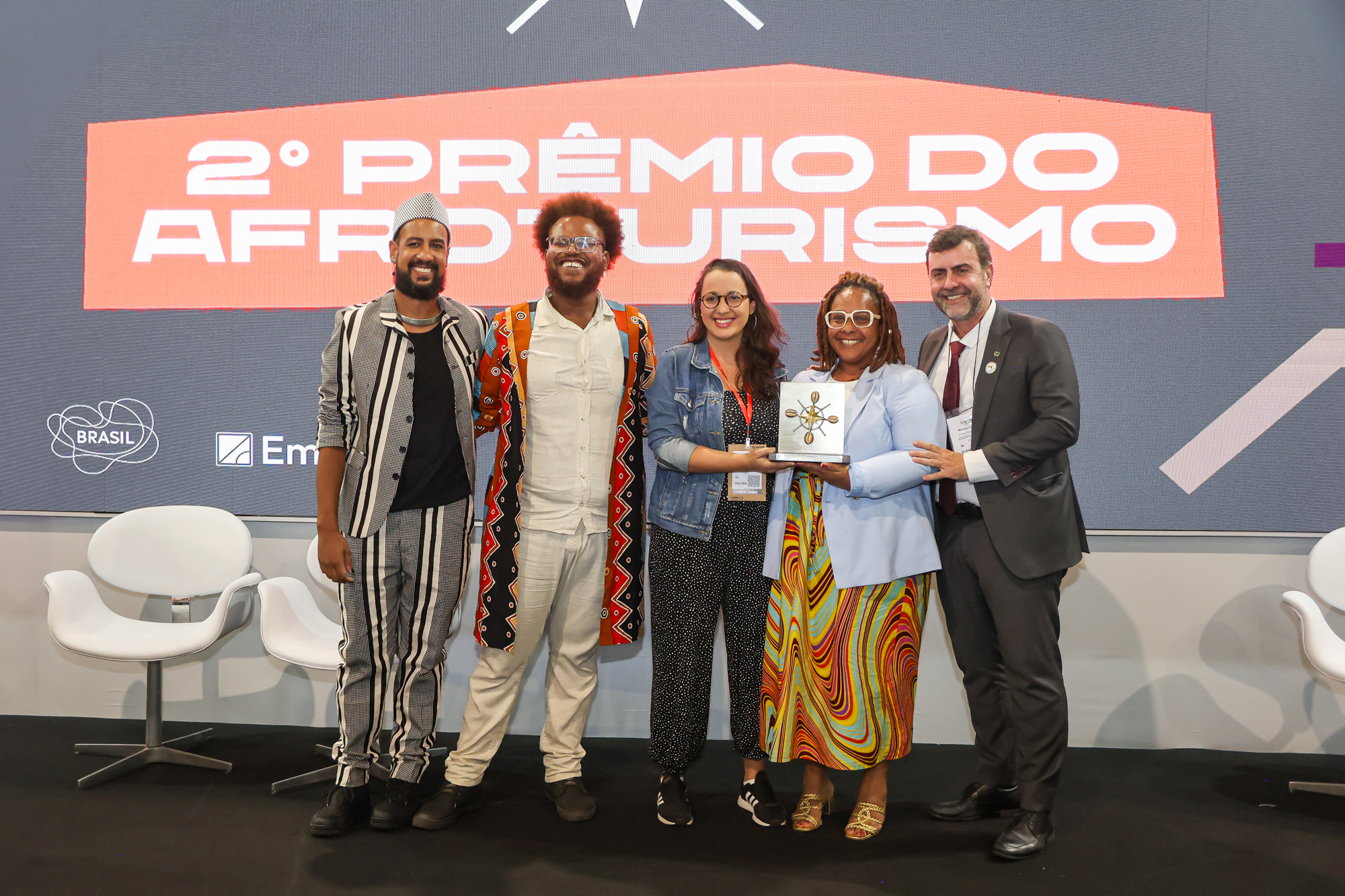 Raquel Passos, CEO da Ibiti Projeto, e Carlos Humberto da Silva Filho, CEO e Fundador da Diáspora.Black, protagonizaram o painel O Futuro das Viagens: Personalização, Diversidade e Regeneração.