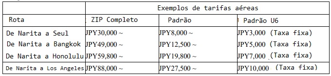 ※As tarifas aéreas mostradas acima são por assento / tarifas de ida partindo de Tokyo Narita