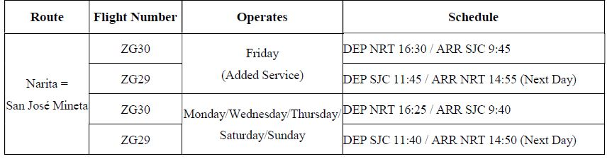 ZIPAIR Tóquio anunciou a decisão de aumentar o serviço sazonal entre Tóquio Narita e o Aeroporto Internacional San José Mineta .