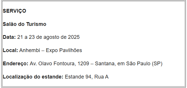 A Decolar – empresa líder em tecnologia de viagens da América Latina – confirma presença no Salão Nacional do Turismo 2025 e leva ofertas exclusivas para o Feirão do Turismo: Conheça o Brasil, que ocorre simultaneamente com o objetivo de promover e apoiar a comercialização de produtos e destinos turísticos, fomentando o mercado doméstico. Promovido pelo Ministério do Turismo (MTur), o evento acontece de 21 a 23 de agosto no Expo Pavilhões, do Anhembi, em São Paulo (SP).