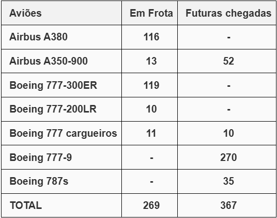 Ao longo dos seus 40 anos de história, a Emirates operou todos os modelos da família Boeing 777 e, hoje, possui a maior frota de 777 do mundo, equipada com motores GE90. Os 119 Boeing 777-300ER, 10 Boeing 777-200LR e 11 Boeing 777 cargueiros da Emirates ligam o Dubai a mais de 140 cidades e facilitam o tráfego de comércio, negócios e turismo em seis continentes.
