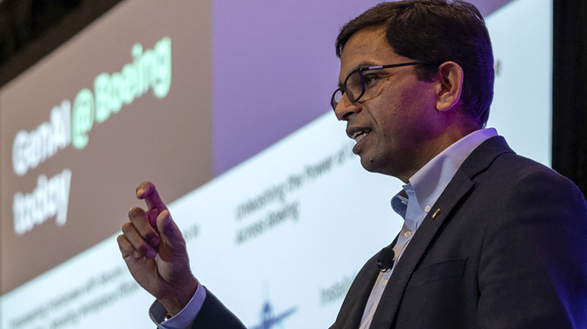 Abhi Seth, diretor de IA e dados, e Vishwa Uddanwadiker, diretor de IA, lideram os esforços da Boeing globalmente. O princípio fundamental: a tecnologia deve aprimorar a capacidade humana, não substituí-la.