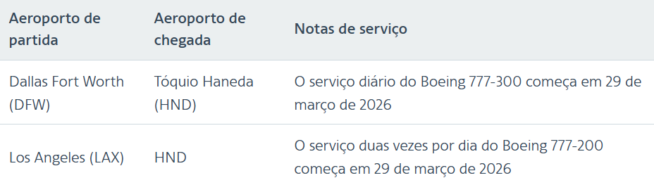 Os bilhetes estarão disponíveis para compra nessas rotas do verão de 2026 a partir de 11 de agosto em aa.com ou pelo aplicativo móvel da American.