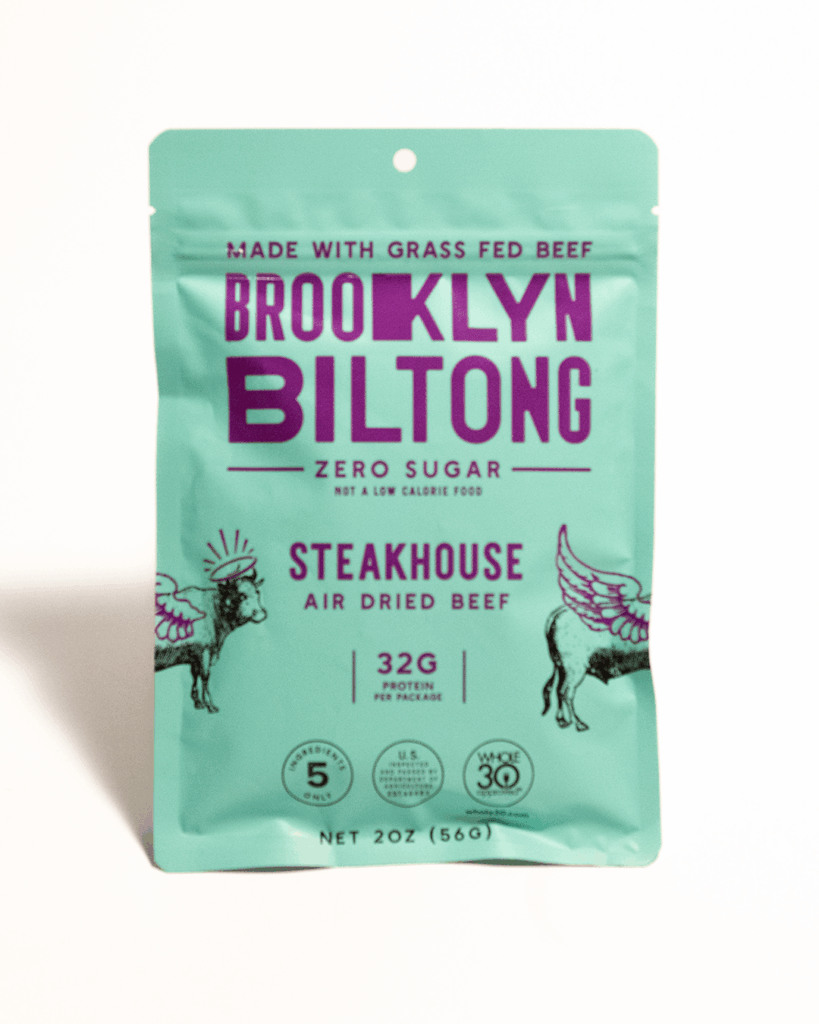 - Carne seca seca ao ar do Brooklyn Biltong Steakhouse , uma opção satisfatória e rica em proteínas, ideal para voos mais longos ou lanches rápidos