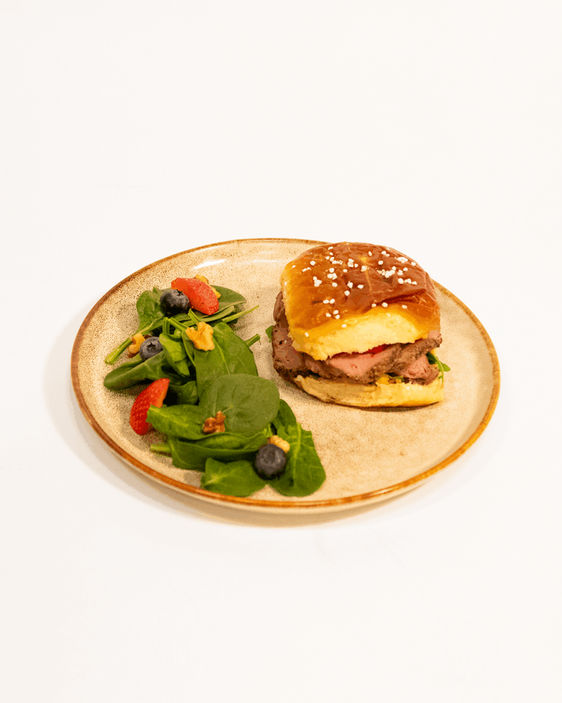 - Tapas de mesa em bandeja , com azeitonas, damascos secos, carne seca, pistache, molho de cheddar branco, chips de pita e brownie crocante — perfeito para clientes que preferem uma experiência compartilhável e saborosa.